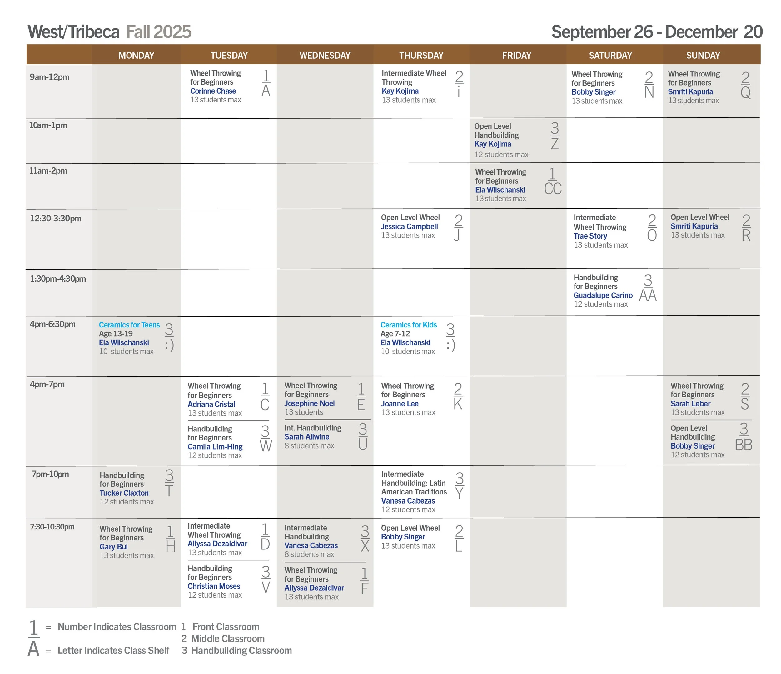To see the full schedules for Summer or Fall, go to bklynclay.com/schedule