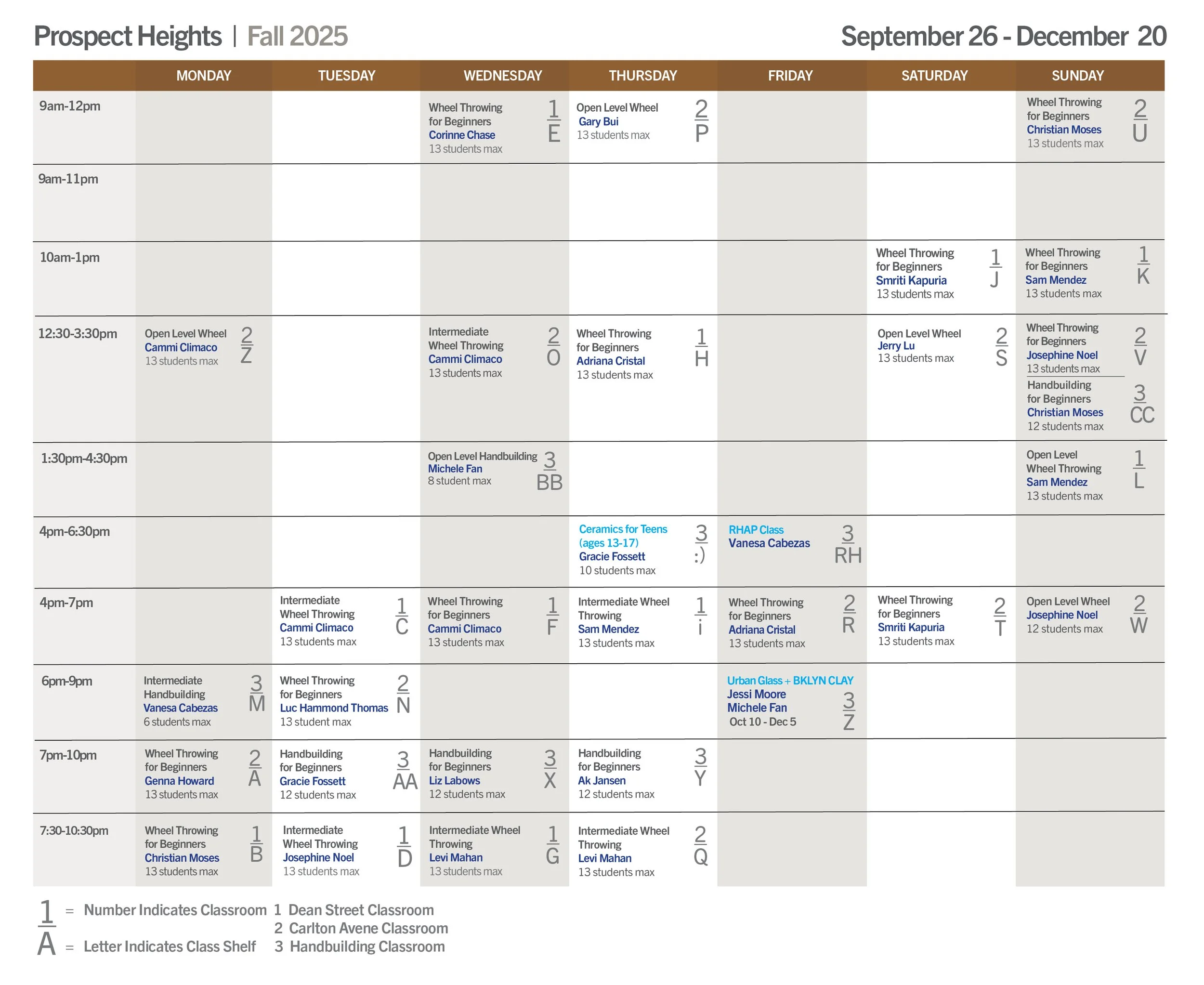 To see the full schedules for Summer or Fall, go to bklynclay.com/schedule