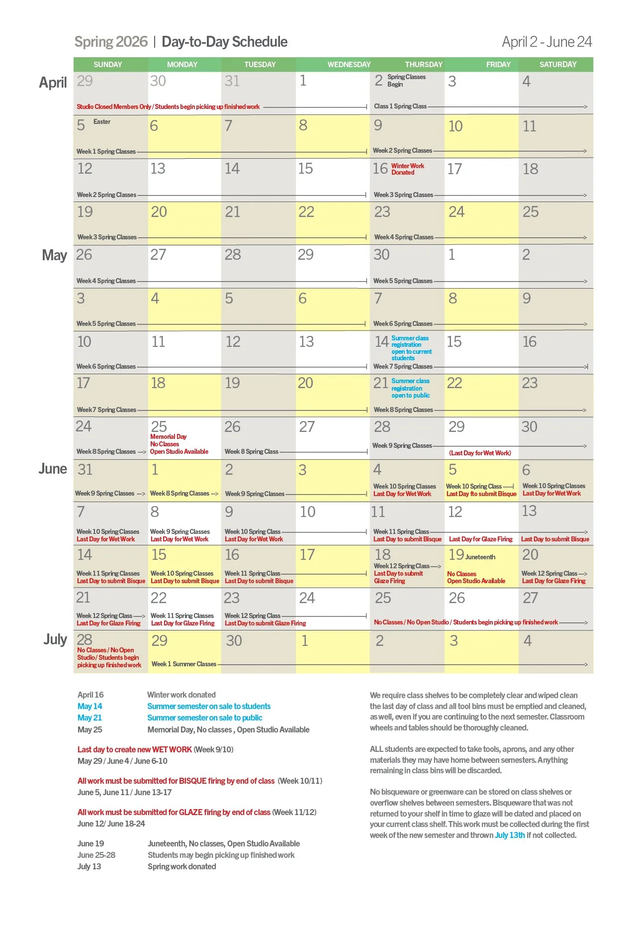 Private Events Affecting Open Studio through 6/12/26 *