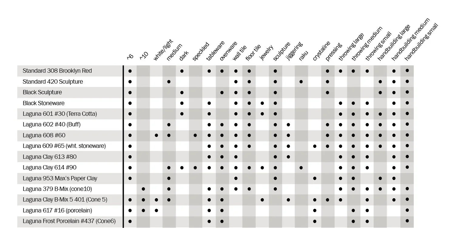 We stock, Laguna, Standard, and Sio-2 clay bodies. In stock for same day pickup, for bulk orders of Laguna please inquire at info@bklynclay.com